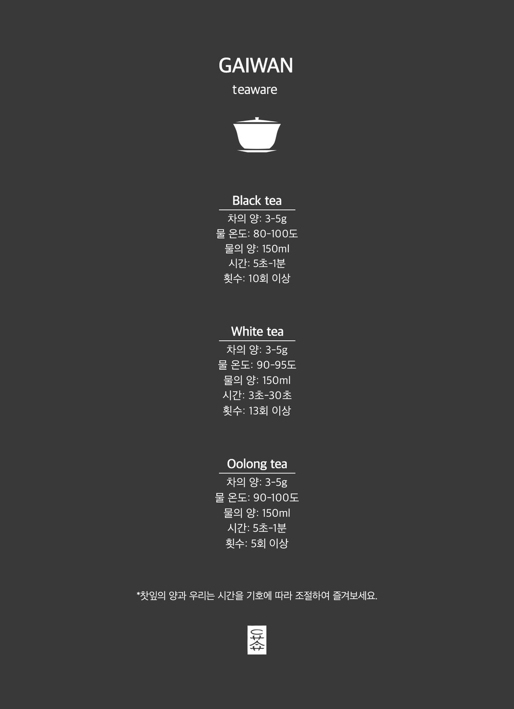 개완은 차를 우려 마시는데 쓰는 다기 중 하나로, 차를 우리는 동시에 잔으로도 사용하실 수 있습니다.